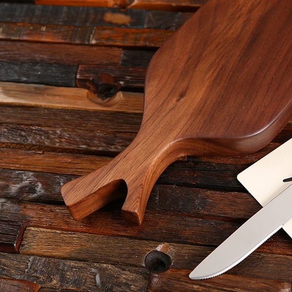 These are our Black Walnut Cutting Bread Boards For Commercial Restaurants Laser Engraved. They’re perfect for restaurants, businesses, and around the house. Each one is made from authentic black walnut. They can be personalized with logos, designs, and text. Let us know how we can make each one special for your business. These come in a minimum order quantity of twenty cutting boards. Larger quantity bulk discounts available, contact us for assistance placing your order.