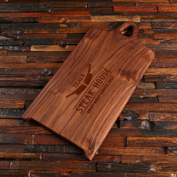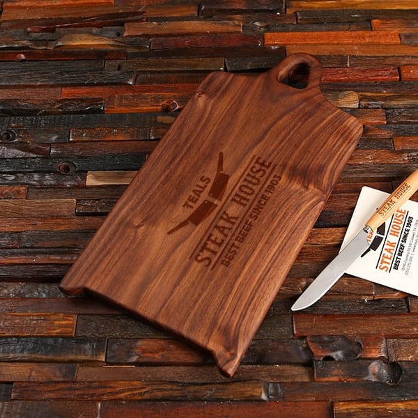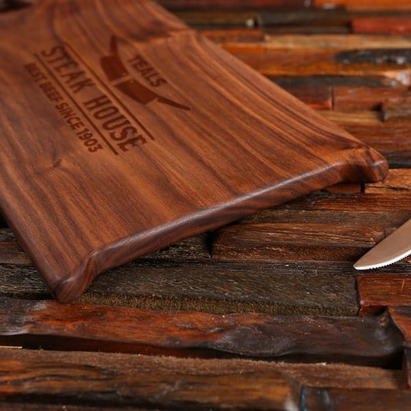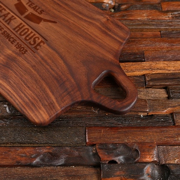 These are our black walnut wholesale discounted laser engraved wood serving boards. They’re perfect for restaurants, businesses, and around the house. Each one is made from authentic black walnut wood. They can be personalized with logos, designs, and text. Let us know how we can make each one special for your business. These come in a minimum order quantity of twenty serving boards. Larger quantity bulk discounts available, contact us for assistance placing your order.