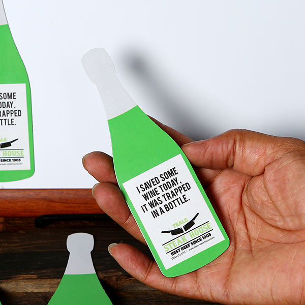 • 1.7″ x 5.9″ (20 mil.) champagne bottle shape magnet.