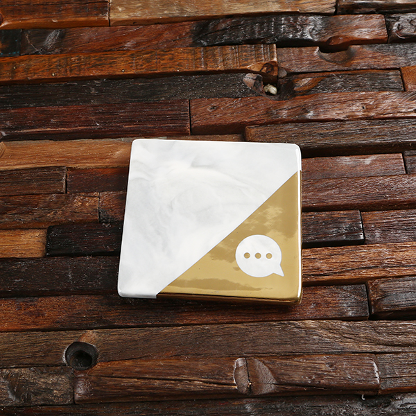 These corporate branded coasters make exceptional business gifts. They come is sets of four and feature gold and ceramic marble. We personalize each set with your custom design or corporate logo. Make each set special for your employees, clients, or coworkers. Available for minimum orders of ten sets. Let us know how we can build them into great gifts or gift sets for you.