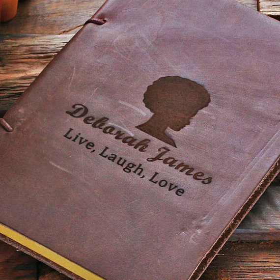 This genuine brown leather journal is perfect for documenting your thoughts, sketches, or even this week’s shopping list. It contains 100 unlined pages of recycled paper, making it perfect for a variety of uses. We can even personalize this journal further for you by adding a name, date, or important information in addition to the Laugh design. Alternatively, send us your own personalization instructions and engravable image to make a one-of-a-kind gift.