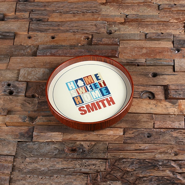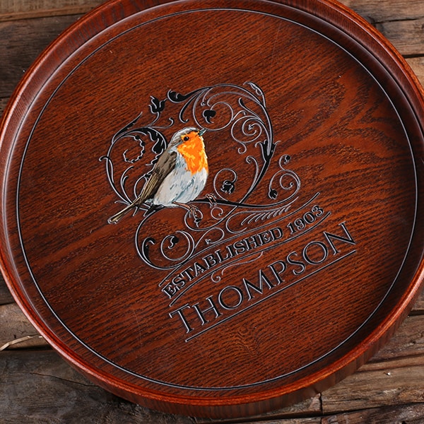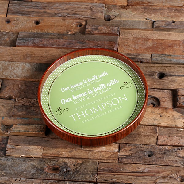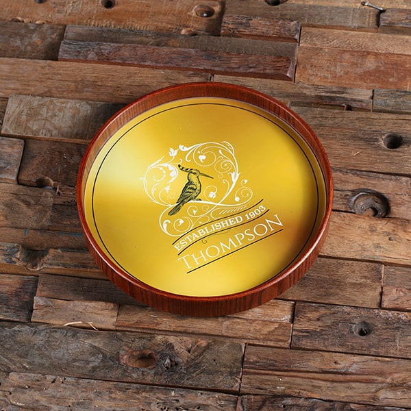 Surprise a family member or friend who enjoys entertaining with this personalized round serving tray. It works perfectly as a centerpiece in any room for providing delicious appetizers or drinks to your guests. Add your own engraving or see the other round trays we offer with a printed design. This tray makes a one-of-a-kind gift when personalized with a name or special message.