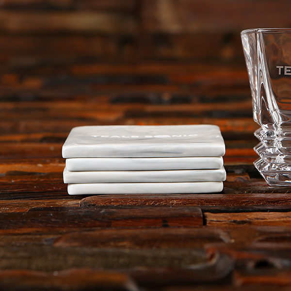 Set of 4 Personalized Square Marble Ceramic Coaster Business Gift