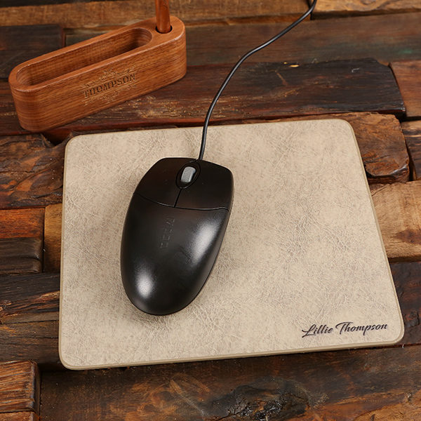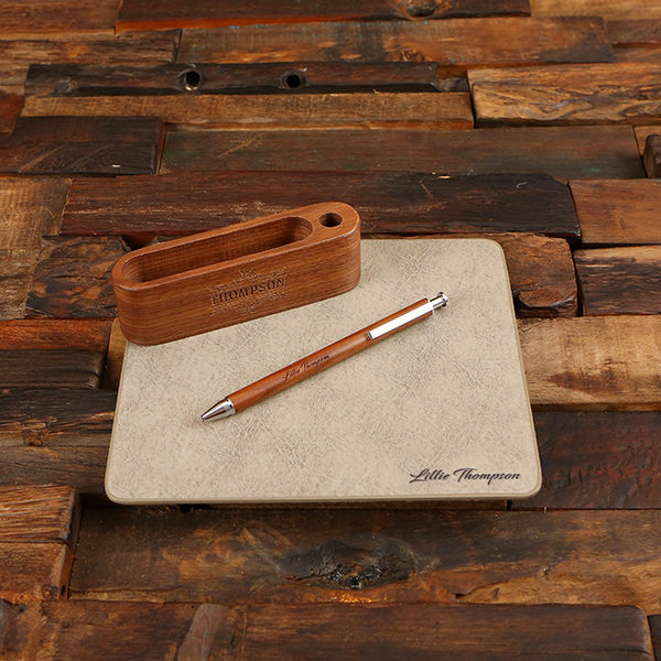 Personalized Walnut Wood Pen, Matching Card Holder & Leather Engraved Mouse Pad Gift Set for the Home or Office